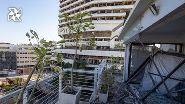 Iranian missile strike on Soroka Medical Center in southern Israel causes extensive damage and injuries. Footage shows blown-out windows and heavy smoke following the attack, which also targeted residential buildings near Tel Aviv. At least 40 people wounded. Israel retaliates with strikes on Iran's Arak nuclear reactor