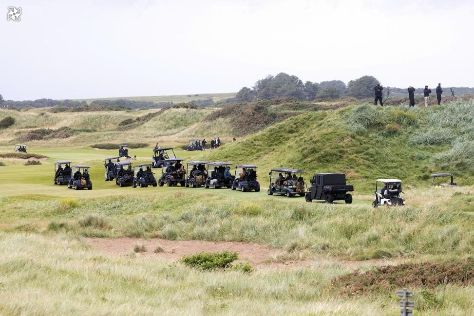 President Donald Trump took what appeared to be an armored golf cart on his golfing trip in Scotland over the weekend, dubbed by some as “Golf Force One,” which the White House confirmed to Forbes is part of Trump’s fleet of specialty vehicles.